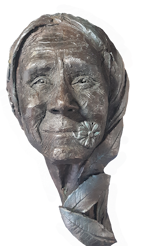 La sculpture sur terre permet de réaliser des œuvres de styles différents en variant les patines. J’aime ajouter des éléments naturels à mes personnages